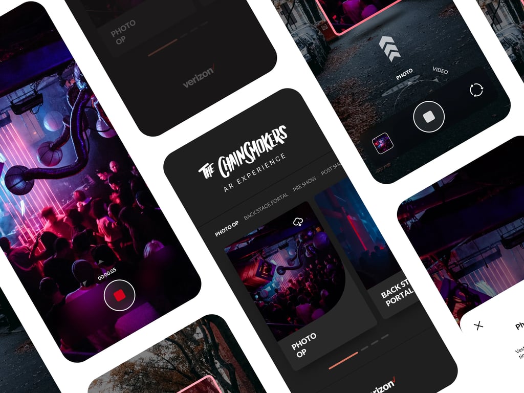 Through our ideation session we came up with 5 unique solution options for the app. Our goal was to find a solution that meets all of Verizon's design guidelines and also capture the visual theme of The Chainsmokers band